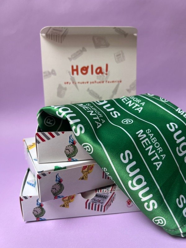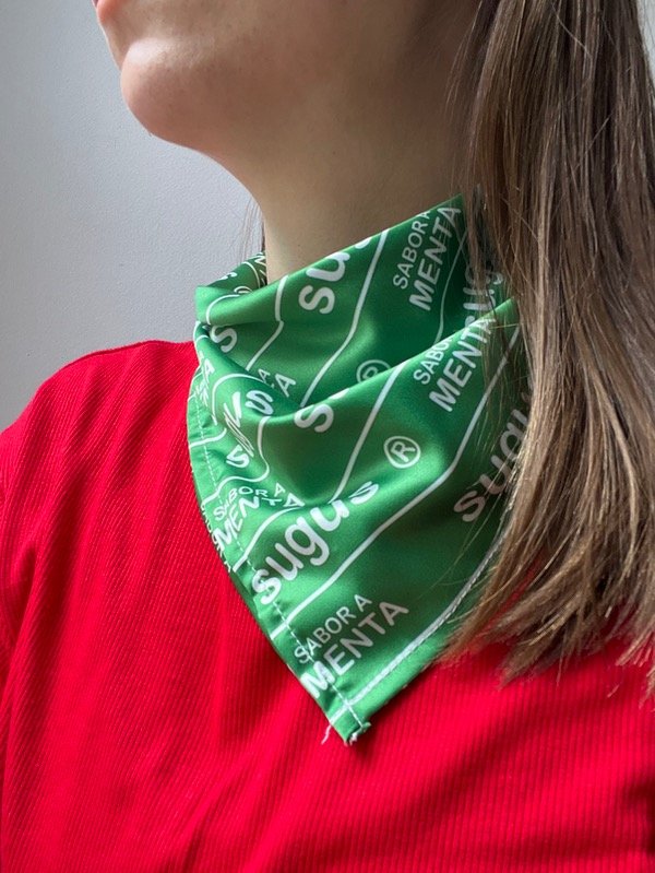 Pañuelo de sedita satén, con los diseños mas cute de golosinitas noventeras.