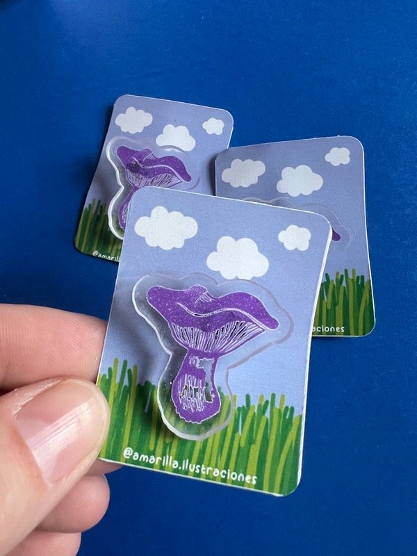 Prendedor Honguito, 3cm, acrílico transparente con glitter